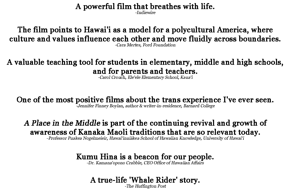 A PLACE IN THE MIDDLE is the true story of a young girl in Hawaiʻi who dreams of leading the boys-only hula group at her school, and a teacher who empowers her through traditional culture. This kid-friendly educational film is a great way to get students thinking and talking about the values of diversity and inclusion, the power of knowing your heritage, and how to prevent bullying by creating a school climate of aloha – from their own point of view!